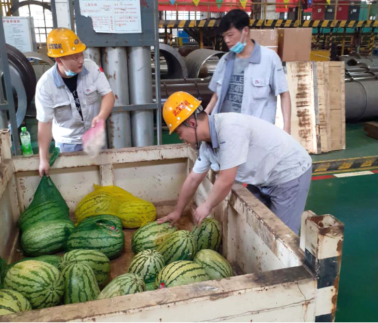 各部門(mén)根據(jù)生產(chǎn)實(shí)際情況以及防暑降溫具體要求,一是科學(xué)組織,合理調(diào)整作業(yè)時(shí)間,關(guān)注員工身體和精神狀況,做好防暑降溫應(yīng)急準(zhǔn)備;二是保證供應(yīng),重點(diǎn)防護(hù),保證一線作業(yè)人員需求,每天為員工提供充足的清涼飲料;三是人文關(guān)懷,細(xì)致入微,各部門(mén)將防暑降溫工作落實(shí)到實(shí)處,為員工購(gòu)買(mǎi)西瓜、各類(lèi)飲品、毛巾、沐浴露等防暑清涼物資,慰問(wèn)在高溫下堅(jiān)守的員工,為他們送去了一絲絲清涼、一份份溫情……