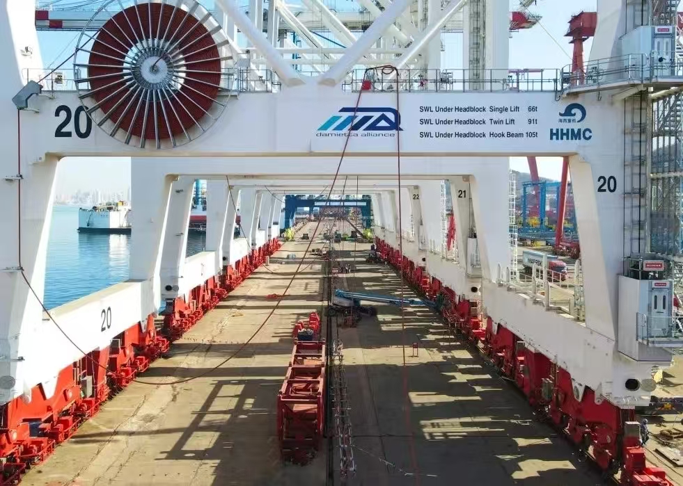 2025年春節(jié)假期,《哪吒2》的熱浪席卷熒幕。哪吒腳踏風火輪,手持火焰槍,踏火而行,刺破云霄,騰云駕霧,所向披靡。中船旗下的武漢船機海西重機公司為各大港口打造的“鋼鐵哪吒”——港口起重機(港機)和岸邊集裝箱起重機(岸橋)載著貨物穿梭往返碼頭之間,港機的行走機構和岸橋的前伸臂,恰似哪吒的神兵“風火輪”“火焰槍”照進現(xiàn)實的科技化身。