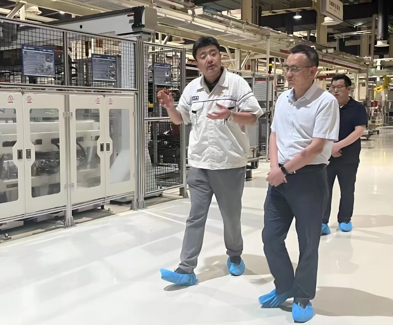 程立兵一行參觀了解放動力惠山基地,現(xiàn)場學(xué)習(xí)了智能制造、精益管理和安全生產(chǎn)等方面做法。解放動力惠山基地以“超級綠色”“超級智能”“超級精益”三大特性展示了其高標(biāo)準(zhǔn)和先進性,致力于打造“世界領(lǐng)先的重型發(fā)動機智能制造基地”,將精益化和綠色化貫穿生產(chǎn)全過程,實現(xiàn)工廠運行管理智能化。智能制造車間里忙碌的機器人、自動AGV物流小車、智能立體庫、綠色熱試線等引人注目,程立兵一行表示解放動力在智能化改造、數(shù)字化轉(zhuǎn)型、探索綠色低碳可持續(xù)發(fā)展等方面對公司具有較強的借鑒和啟示意義。
