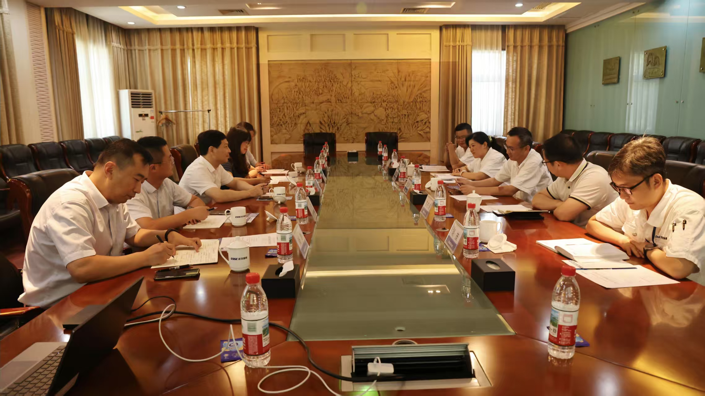 7月23日,江蘇科技大學(xué)黨委常委、副校長(zhǎng)胡愛祥一行到中船集團(tuán)武漢船機(jī)交流。公司黨委副書記、總經(jīng)理程立兵接待,綜合管理部、人力資源部、科創(chuàng)與信息化研究中心、技術(shù)中心等部門負(fù)責(zé)人參加座談交流。