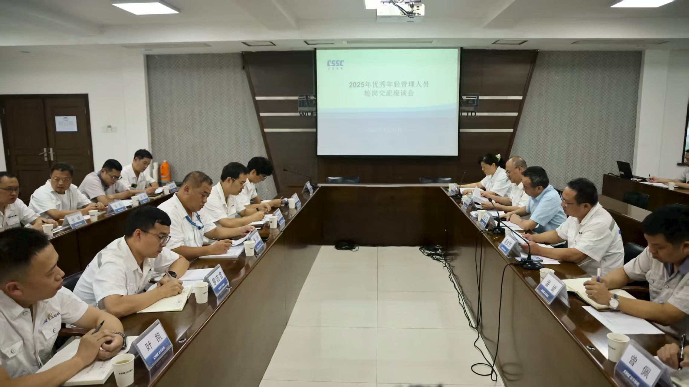 7月31日,中船集團(tuán)武漢船機(jī)召開優(yōu)秀年輕管理人員輪崗交流座談會。公司黨委副書記、總經(jīng)理程立兵,黨委委員、副總經(jīng)理潘文勝,黨委委員、總會計(jì)師陳世龍出席會議。
