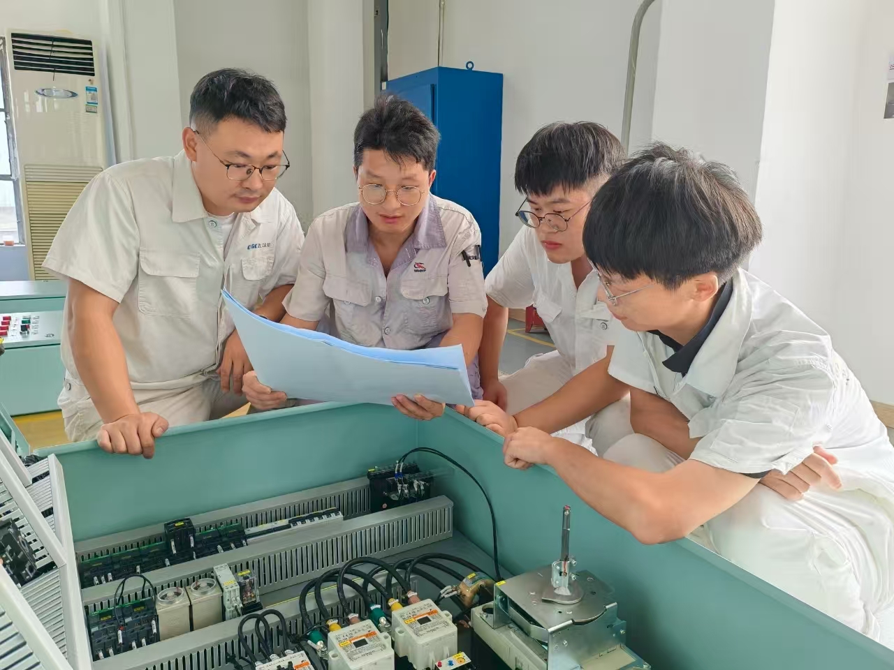 以在制產品為目標,注重培訓過程細節(jié)。培訓計劃制訂后,授課老師聚焦產品加工特點,不斷優(yōu)化調整課件,讓教學更加通俗易懂,提高培訓人員接受度。在幾位高級技師授課內容中,增加了生產現場講解環(huán)節(jié),讓青年電工更直觀了解產品布線、接線、調試等知識;技術人員講授理論課程時,均以產品案例為主,讓青年電工更深入掌握基礎知識。培訓結束后,分別開展了理論知識測試和電控柜裝接實操測試,經過檢驗,青工理論水平和實操水平得到一定提升。