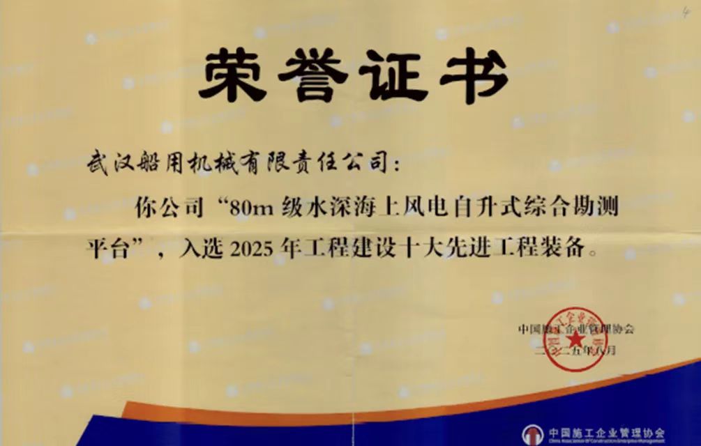 近日,2025年工程建設(shè)十大先進工程裝備名單正式公布, “80m級水深海上風(fēng)電自升式綜合勘測平臺”成功入選。該平臺是中船集團武漢船機總包建造的“華東院308”平臺,中國電建集團華東勘測設(shè)計研究院有限公司等多家單位共同研制。作為當(dāng)前我國技術(shù)指標(biāo)先進的海洋新能源綜合勘測平臺,在深遠海風(fēng)電勘測實際工程應(yīng)用中發(fā)揮了突出作用。